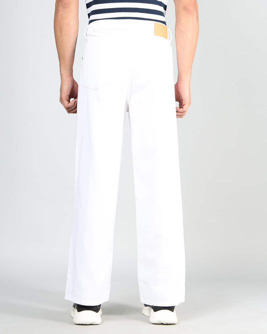 M Q Jeans Men Straight Fit Jeans | White Cotton Denim | Mid Rise | Comfortable Casual Wear