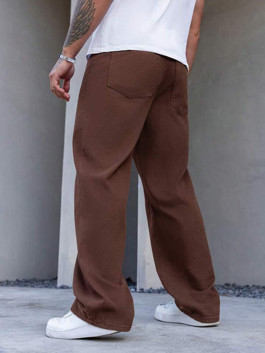 MQ Denim Men's Wide Leg 6-Pocket Cargo Mid Rise Brown Jeans, Non-Stretchable and Pure Cotton Denim. Trendy and Comfortable Casual Wear