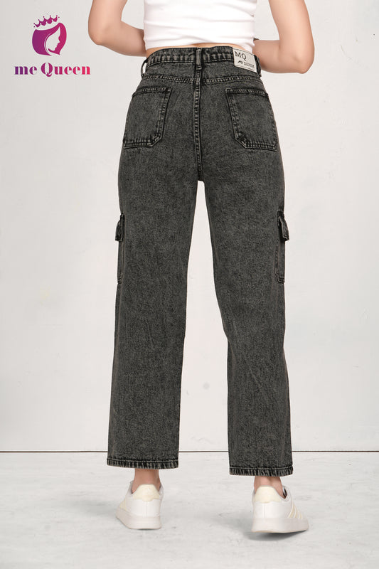 MeQueen Women's Loose Fit Cargo Pocket Black Jeans
