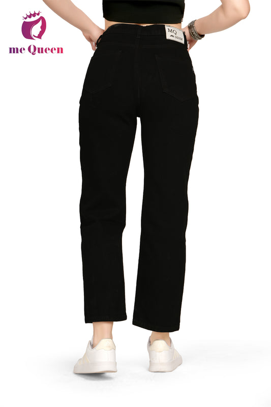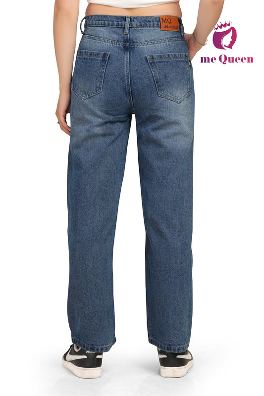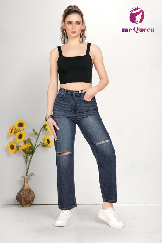 MeQueen Women's Knee Slit Dark Blue Color Jeans