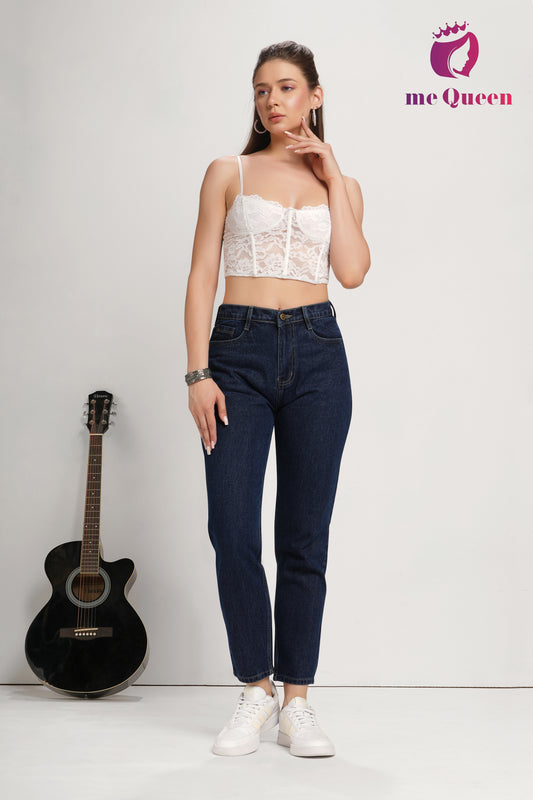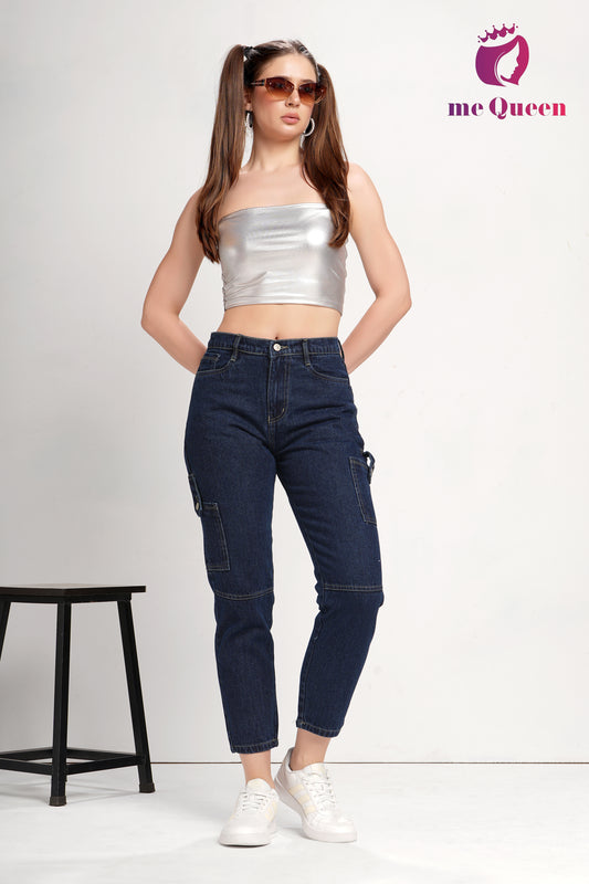 MeQueen Women's Police Blue Fit Denim Jeans with 2 flap pockets