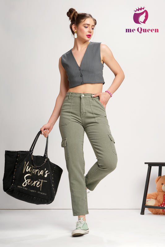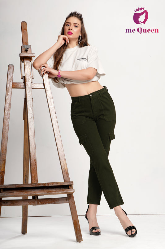 MeQueen Women's Dark Olive Green Fit Denim Jeans with Handy Pockets