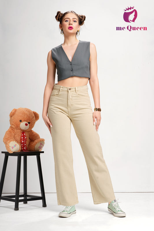 MeQueen Women's Beige Loose Fit Denim Jeans