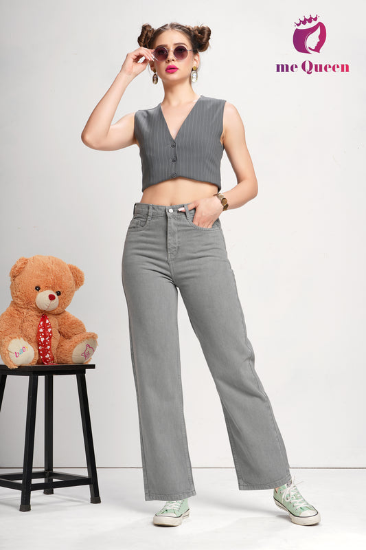 MeQueen Women's Cool Gray Fit Denim Jeans