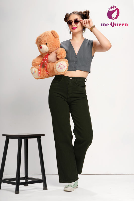 MeQueen Women's Dark Olive Loose Fit Denim Jeans