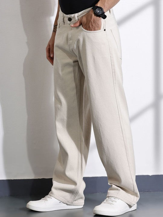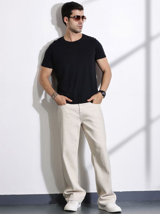 M Q Denim Jeans Men's Regular Fit 100% Beige Cotton Jeans | Soft, Durable Denim | Mid Rise Casual Stylish Comfort Wear for Daily Use
