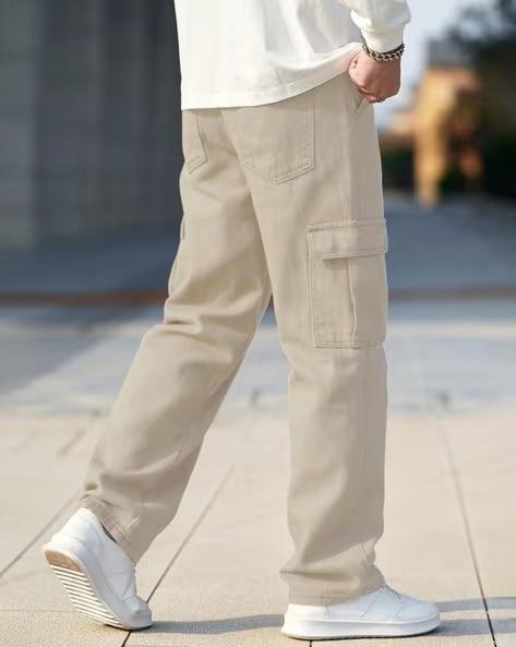 M Q Denim Men Beige Cargo Jeans | Mid Rise | 100% Cotton | Six Pocket Utility Denim | For Casual Wear