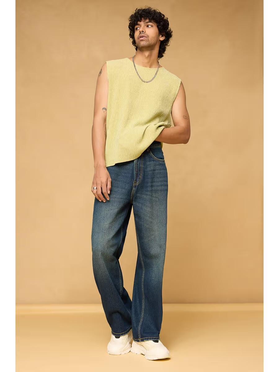 M Q Men’s Straight Fit Loose Jeans | Mid Wash Whisker Spray Denim | Comfortable Heavy Cotton | Casual Wear | Tint