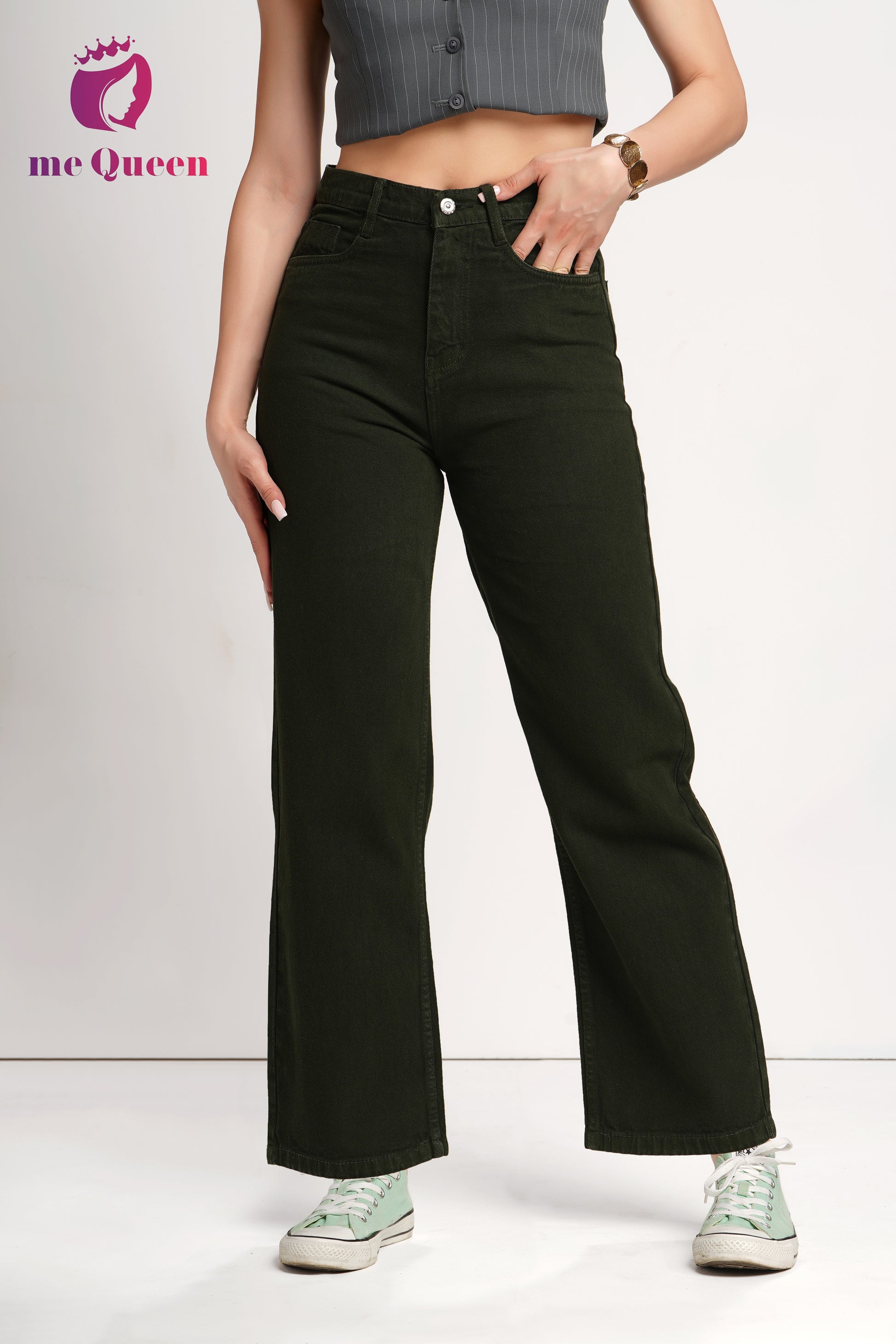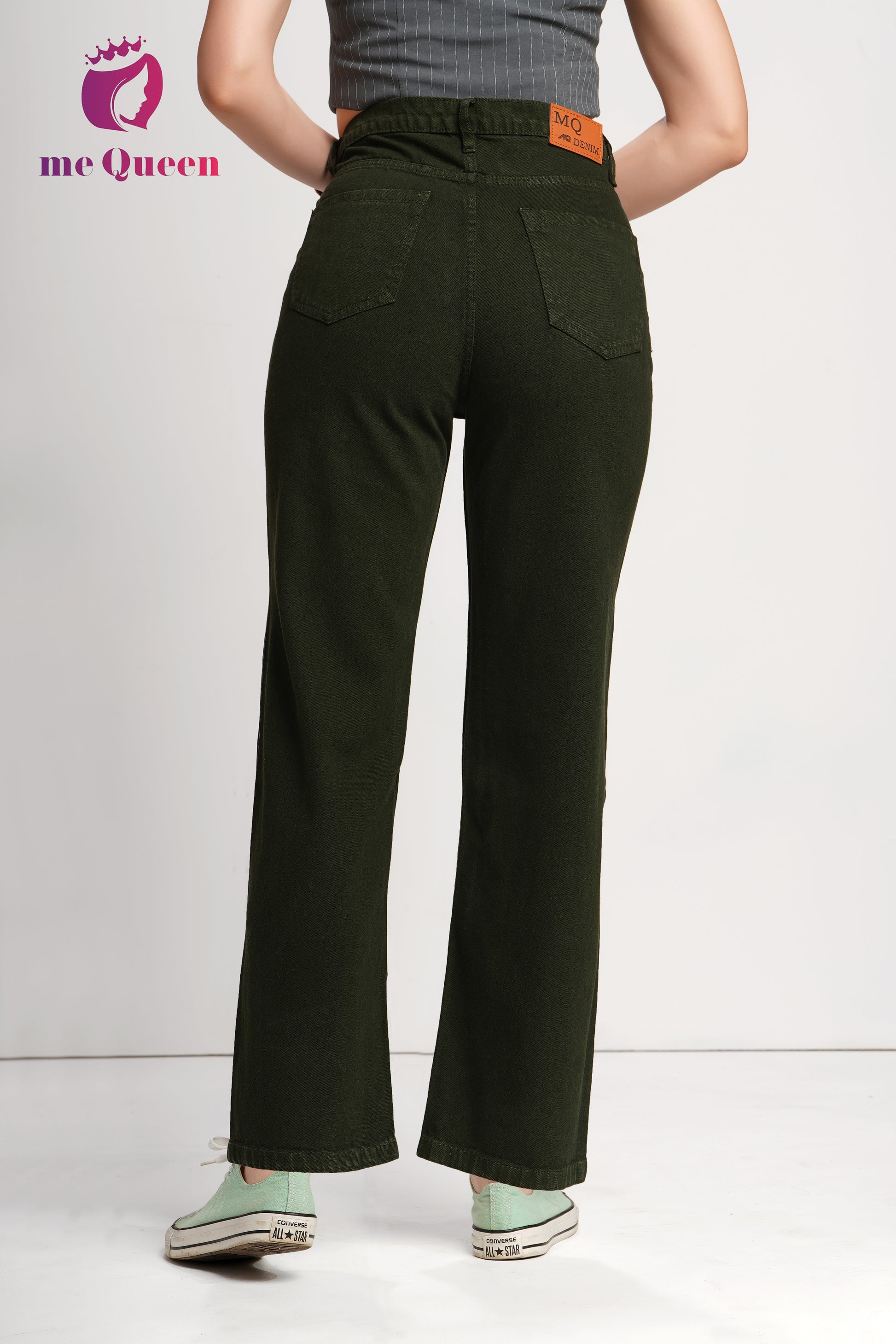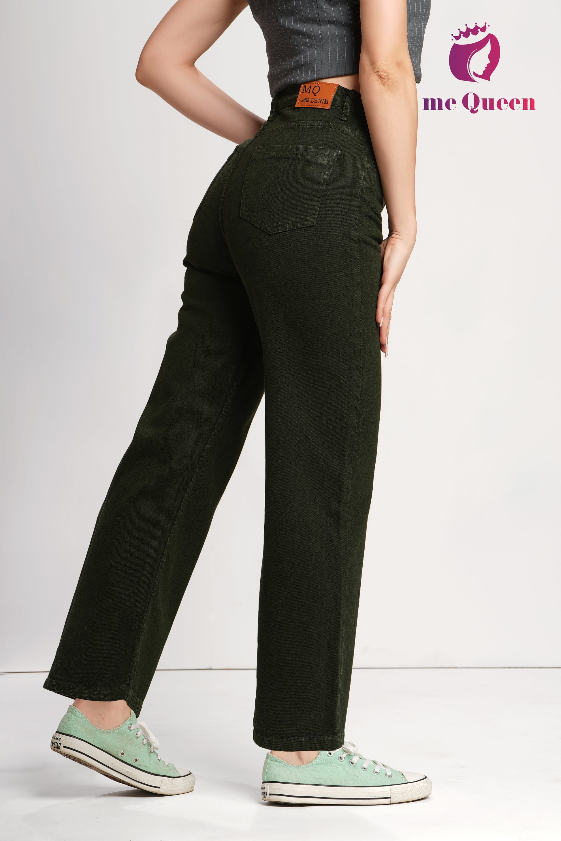 MeQueen Women's Dark Olive Loose Fit Denim Jeans