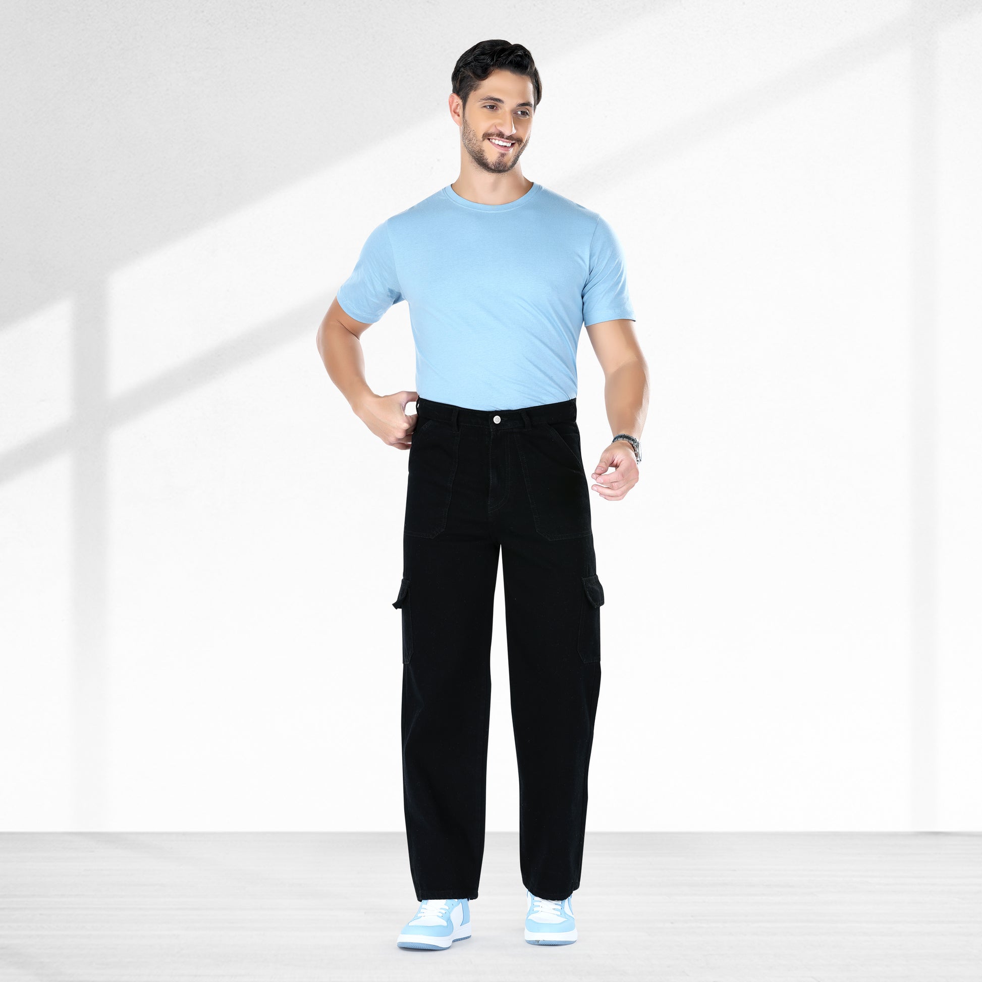 Elevate your casual wardrobe with the MQ Denim Men’s Wide Leg 6-Pocket Cargo Jeans. Crafted from premium non-stretchable, pure cotton denim, these jeans offer the perfect blend of durability, comfort, and style. The wide-leg design provides a relaxed, laid-back fit, offering plenty of room through the thighs and legs, making them ideal for all-day wear.