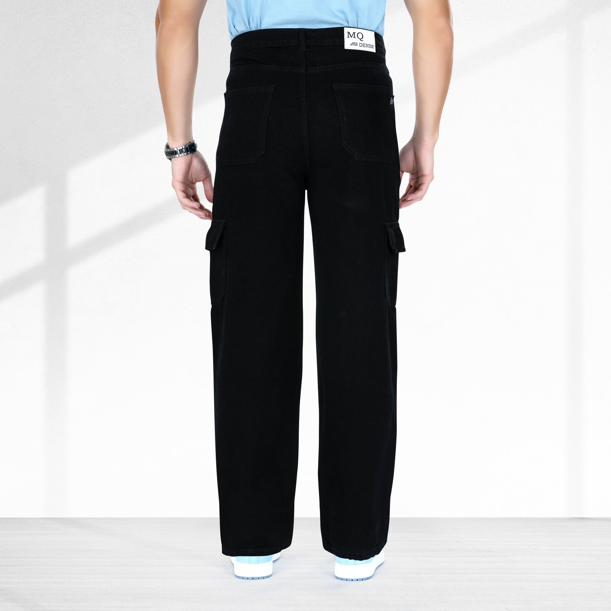 MQ Denim Men's Straight Leg 6-Pocket Mid Rise Cargo Jeans, Non-Stretchable and Pure Cotton Denim. Trendy and Comfortable Casual Wear.