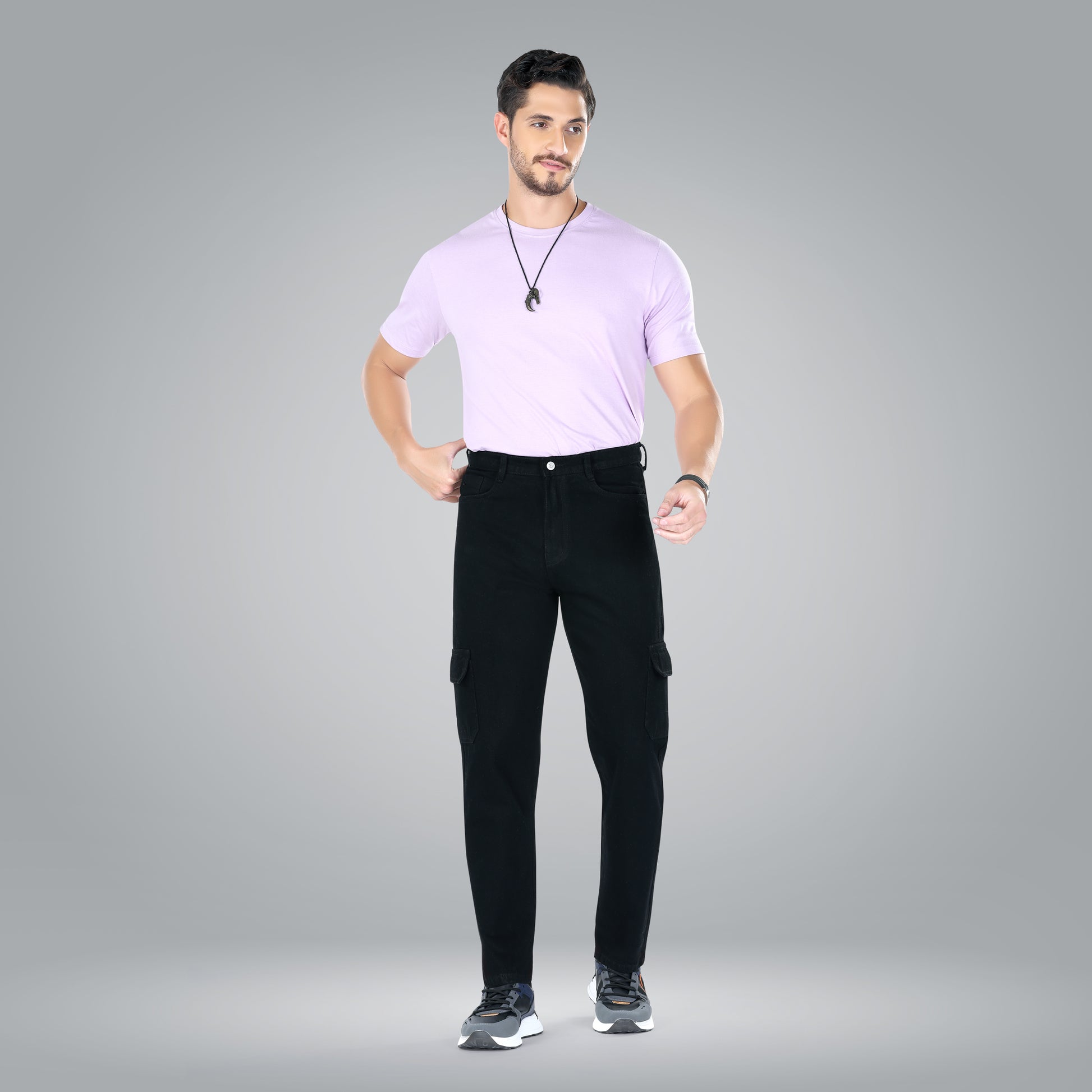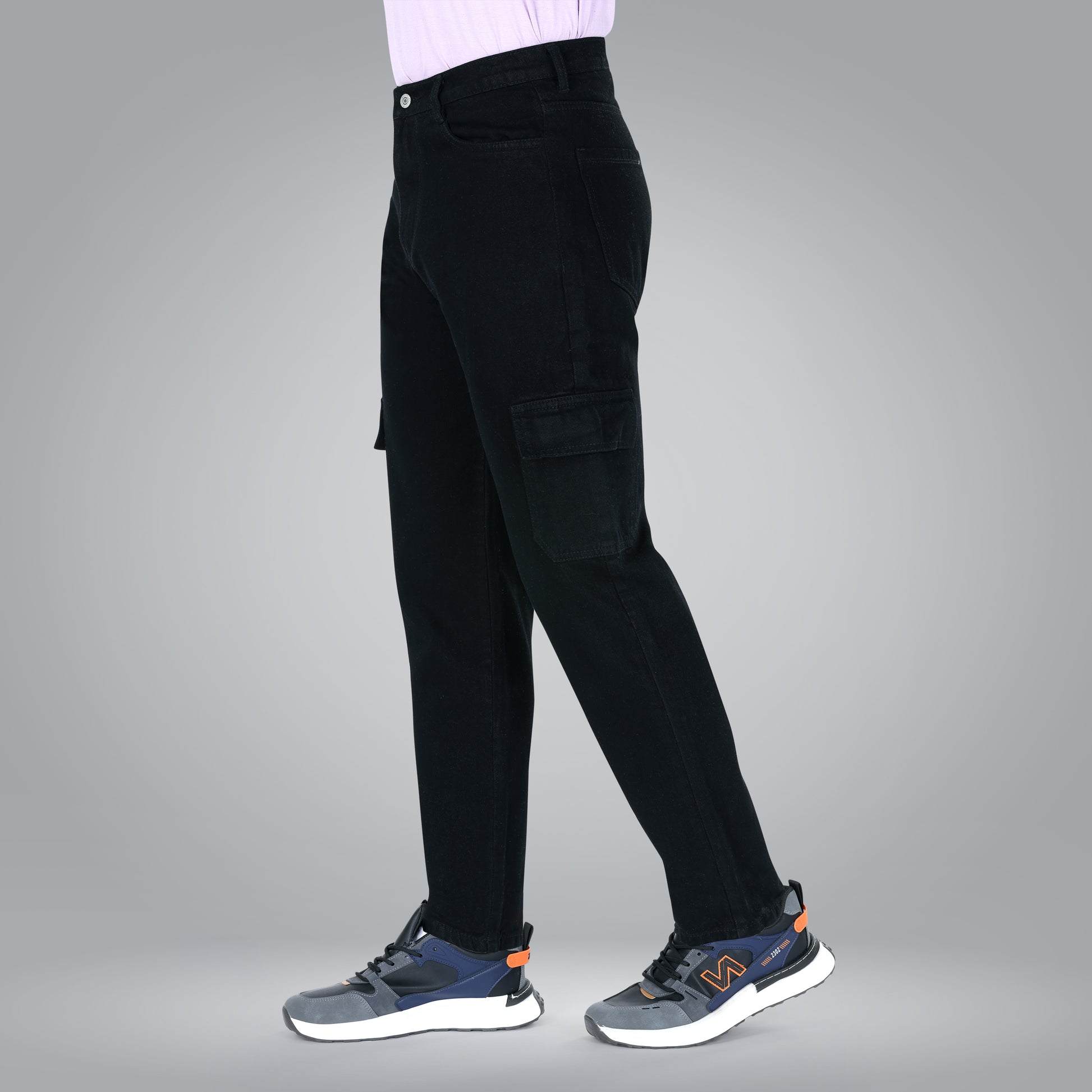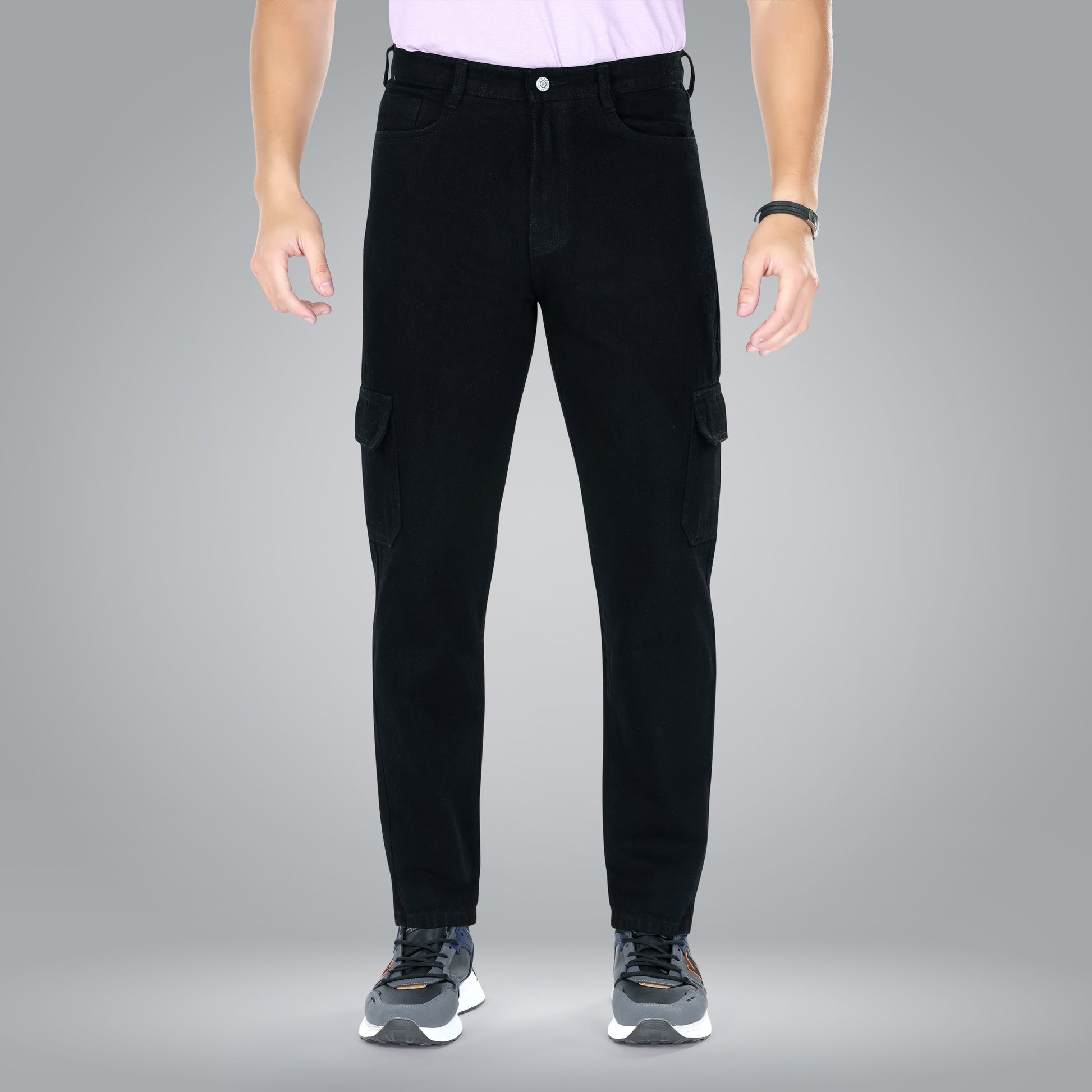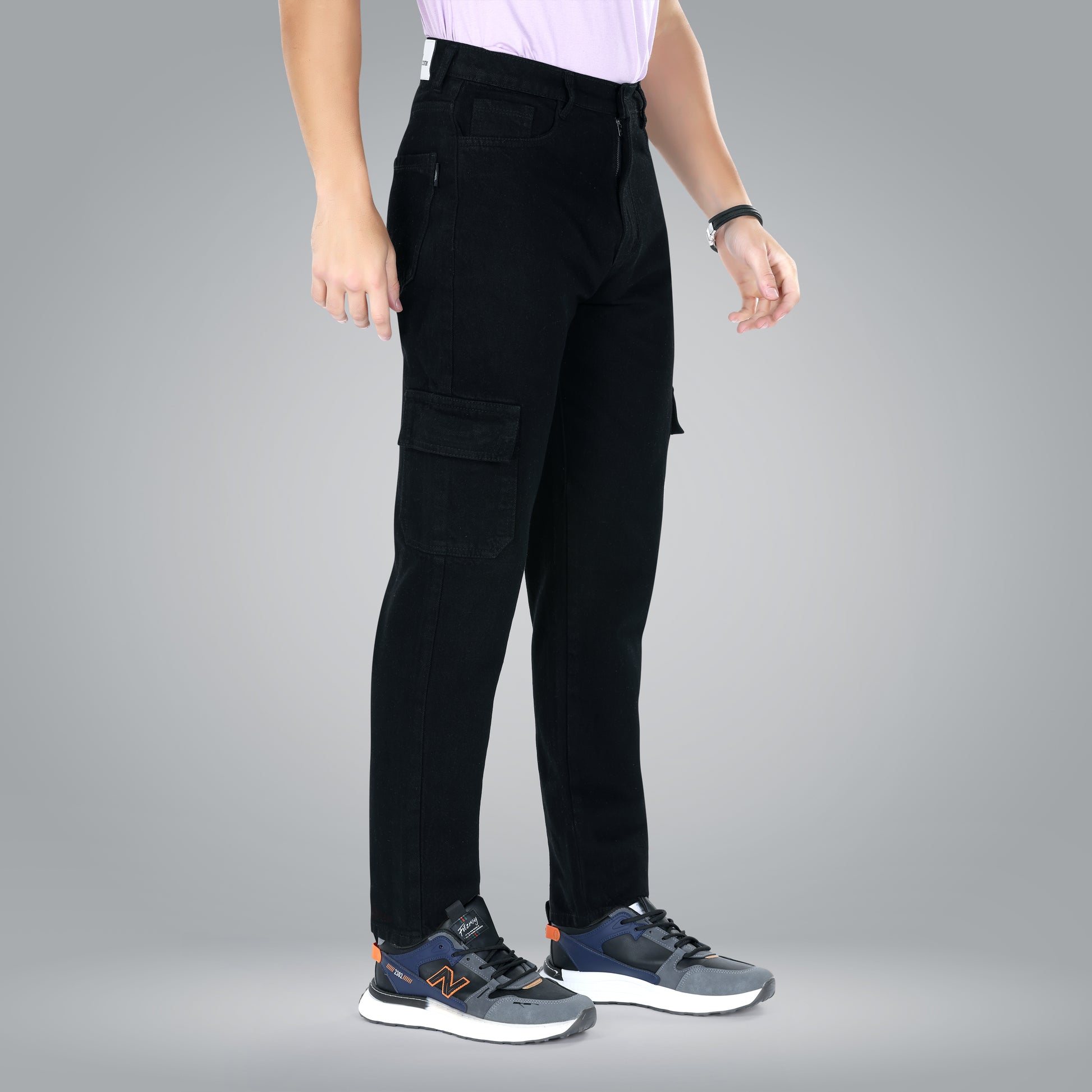 MQ Denim Men's Tapered Fit 6-Pocket Cargo Mid Rise Black Jeans, Non-Stretchable and Pure Cotton Denim. Trendy and Comfortable Casual Wear.