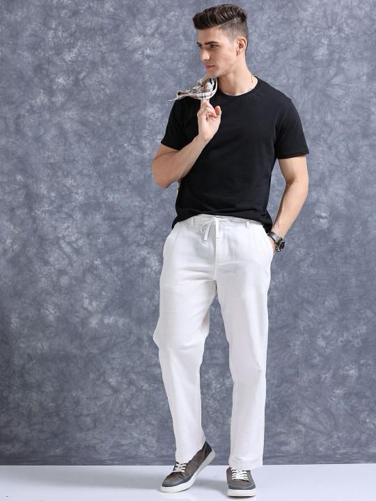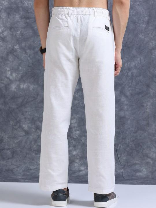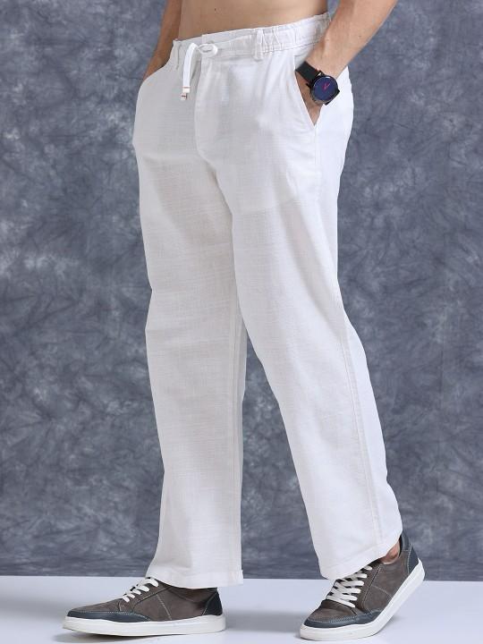 MQ Denims Men's Relaxed Fit Stylish White Linen Pants – Lightweight, Breathable, and Versatile Casual Wear