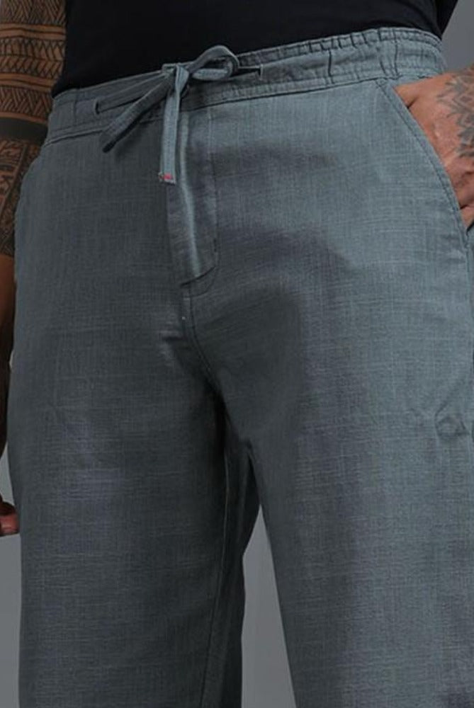 MQ Denims Men's Relaxed Fit Stylish Grey Linen Pants – Lightweight, Breathable, and Versatile Casual Wear